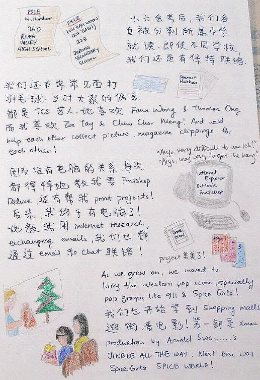 About 4 months ago, I'd sent Huishan off at the airport cos she'd be at stationed at Kobe, Japan for 2 years. I drew her a card just a day before but due to the rush, I didn't have time to take pics or scan it out so I asked her to remember to take pics of it and post it up but she didn't also la. So I do it myself la! LOL!! Damn kiddish drawing, don't laugh...Haha!!