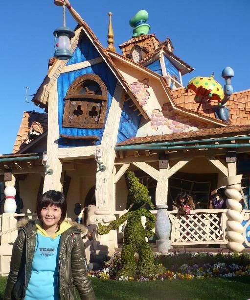 From the riverboat, we walked passed the Nightmare (Yeah, Tim Burton's Nightmare before Christmas) and wanted to take a pic with the house. We'd gotten one of the disney staff to help us take and she was telling us to say "Mickey" instead of "Chi-tsu (Cheese)" and we ended up looking...