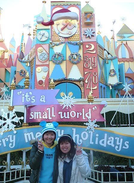 We went inside 'It's a Small World" and queued up for our 2nd ride. We get to seat on one of those boat thingy and we get to see little beautiful lighted puppets & dolls singing carols or folk songs for us. The tunes are obviously old English folk children songs but they translated the song into Japanese and... it sounded rather weird to my ears but the visual aspects was enough to make me impress.